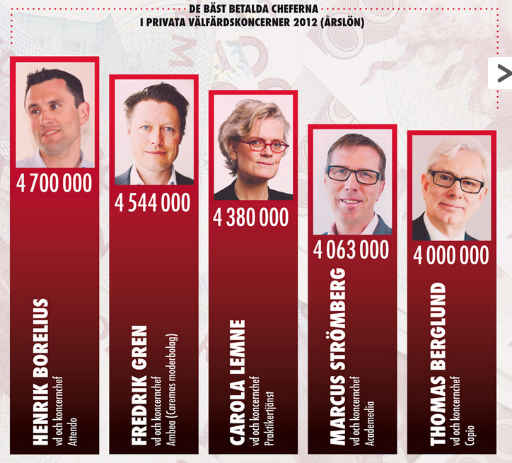 Bäst betalda cheferna i privata välfärdskoncerner 2012: