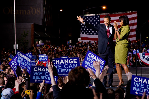 Bort från Bushland och till något annat. Men vad då? Kanske är det som han själv skriver, att han är ”tillräckligt ny i politiken för att kunna fungera som en vit duk på vilken människor av olika politiska schatteringar kan projicera sina egna åsikter”? Att hans, enligt vissa kritiker, ganska vaga budskap om förändring byggt outsourcade drömfabriker? Kanske delvis, men de lyssnar också till vad han säger, och vad han sagt allt tydligare ju längre loppet gått: att han vill satsa på en utbyggnad av infrastruktur och utbildning, garantera alla amerikaner en bra sjukförsäkring, täppa till hålen i de sociala skyddsnäten, återkalla Bushadministrationens skattesänkningar, avveckla oljeberoendet och ta hem trupperna från Irak.
